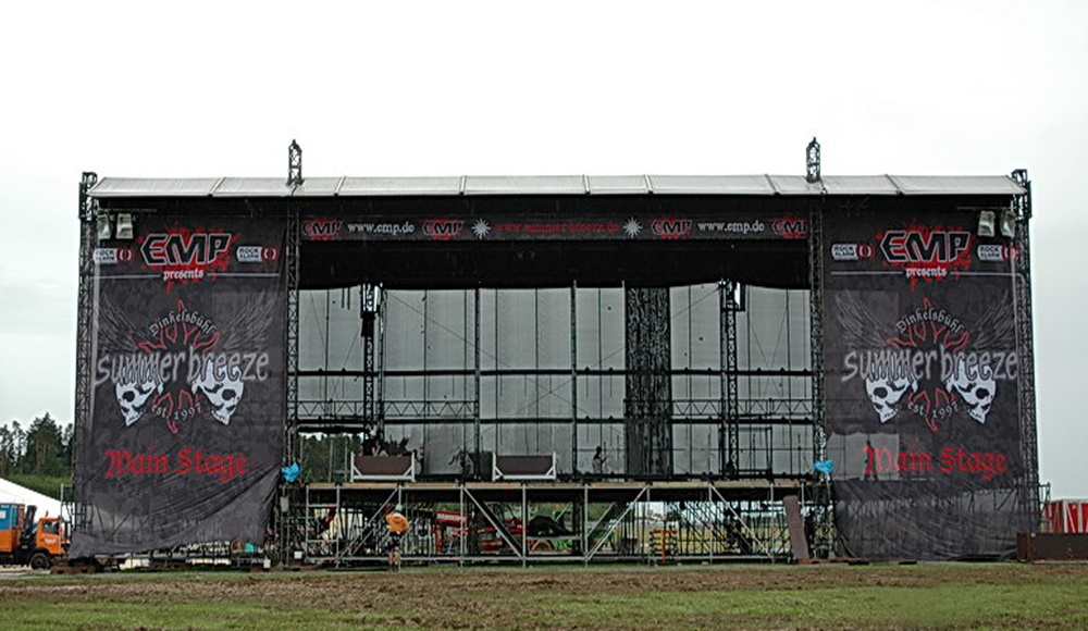 Our stage banners are made of a special micro-perforated fabric that is both wind and sound-permeable. The stage banners are finished with hemmed sides and metal eyelets for easy installation. The 4-color digital printing allows for the display of any motif, such as event logos, XL photos, or company logos. We offer customization in any size and guarantee a flame-retardant version according to B1. You also benefit from our short delivery times. Thanks to its robustness, the stage banner is ideal for use at music festivals and outdoor events of all kinds. It is an excellent solution for presenting your brand or event professionally and eye-catchingly.