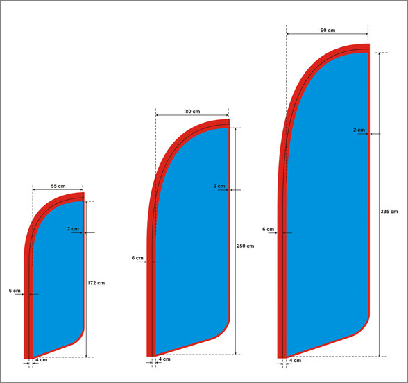 Thanks to the characteristic shape of the beach flag, your advertising print is clearly visible even when there is no wind.