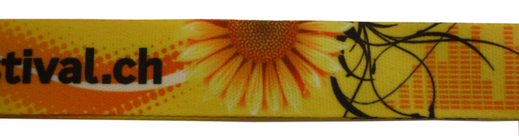 This high-quality digital printing process promises lanyards with a special look and print quality. The print data is digitally transferred to a transfer foil and then transferred to the lanyard using pressure and heat. This makes the lanyards particularly soft and gives them a velvety feel. Lanyards in sublimation printing are ideal for photos, elaborate logos and graphics; almost any motif can be realized with this print. The number of printing colors is not limited, and color gradients can be printed in great detail. One-sided or double-sided printing is possible.